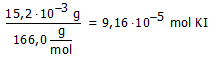Hoeveel mol is 15,2 g KI?