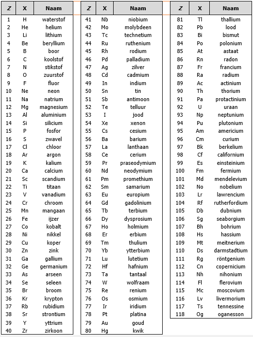 Nederlandse elementnamen